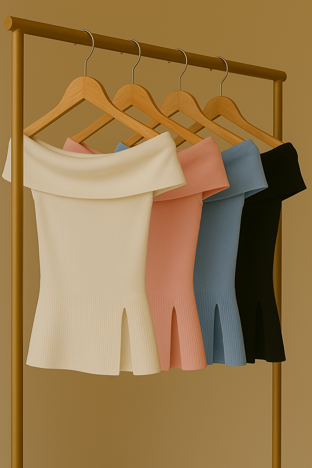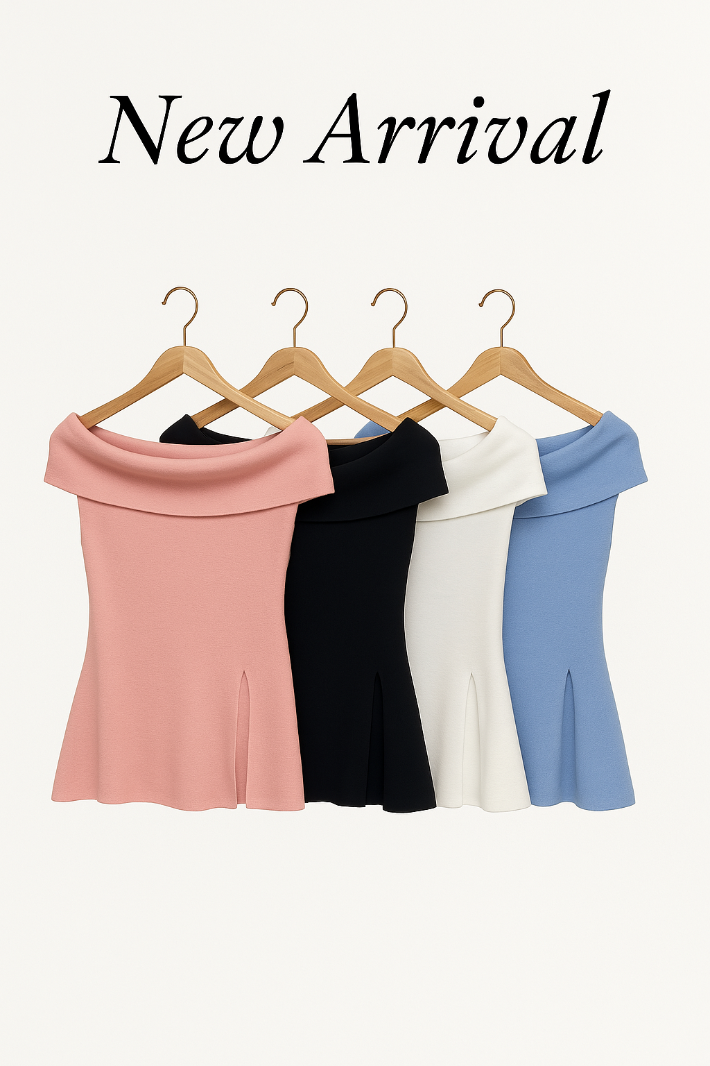 Elevate your feminine charm with this elegant off-shoulder mini dress, crafted from soft and stretchable knit fabric. The wide neckline gently drapes over the shoulders, creating a graceful silhouette, while the subtle front slit adds movement and modern detail. Available in four pastel-inspired shades — ivory, pink, sky blue, and black — it flatters all skin tones and is perfect for spring and summer. Whether for a date, brunch, or vacation, this dress effortlessly blends comfort and style.